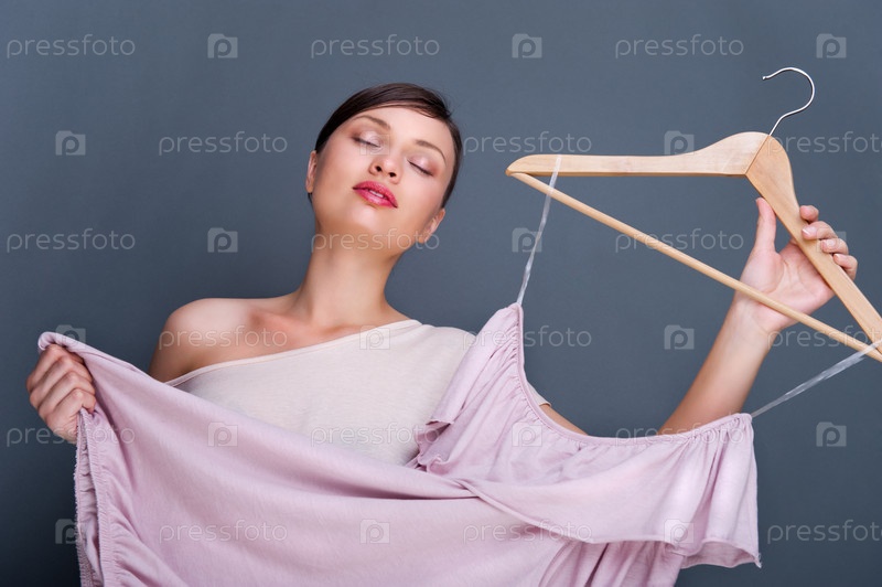 Красивая девушка примеряет новое платье