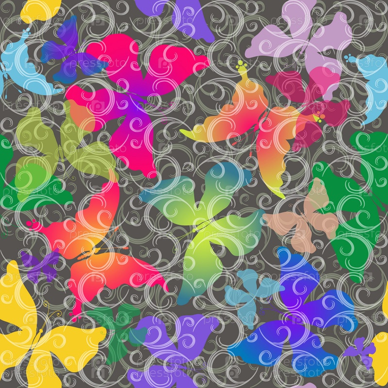 Разноцветные бабочки на сером фоне