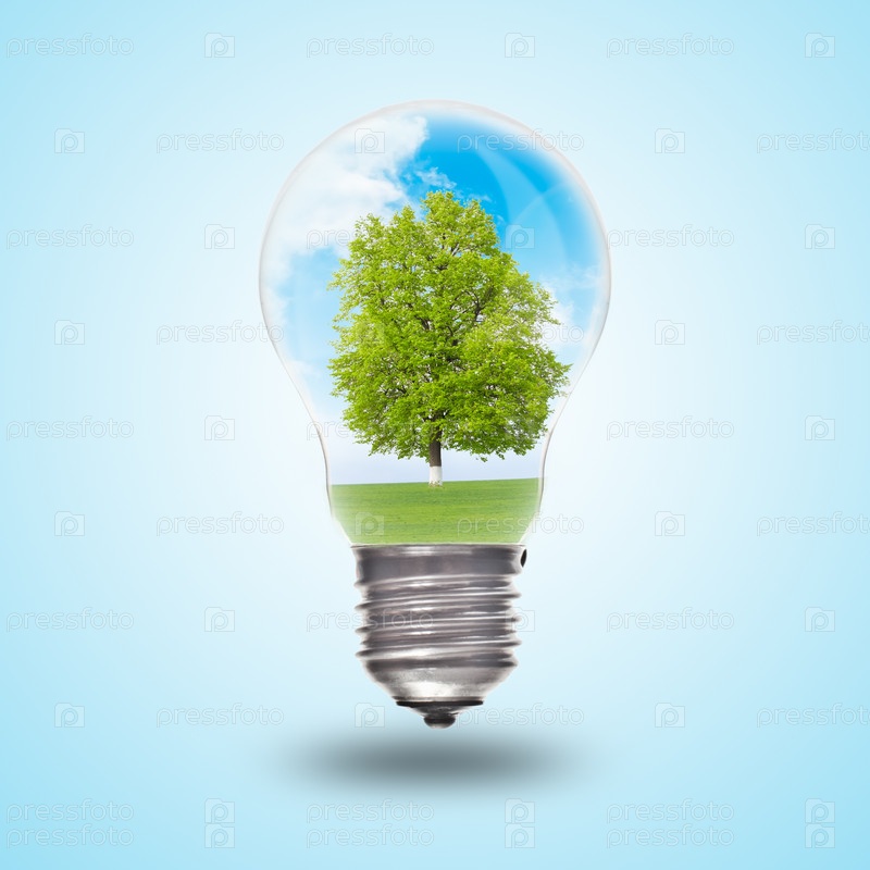 Зеленое дерево внутри лампочки