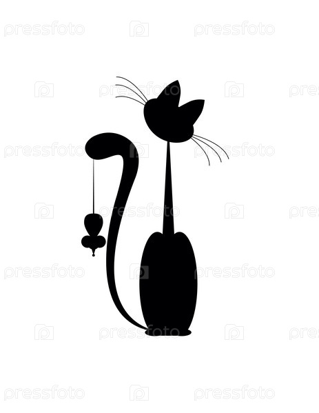 Кот и мышь на белом фоне