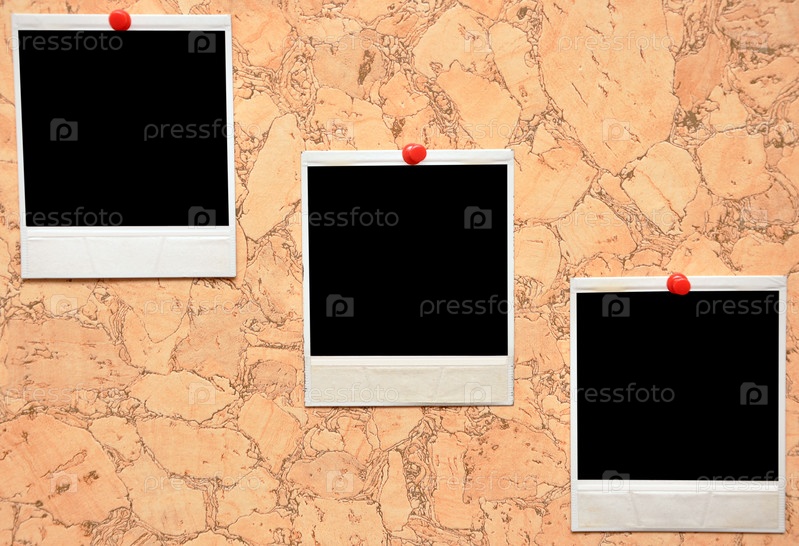Пустые фотоснимки на пробковой стене