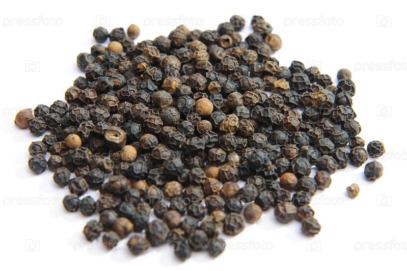 Черный перец на белом фоне