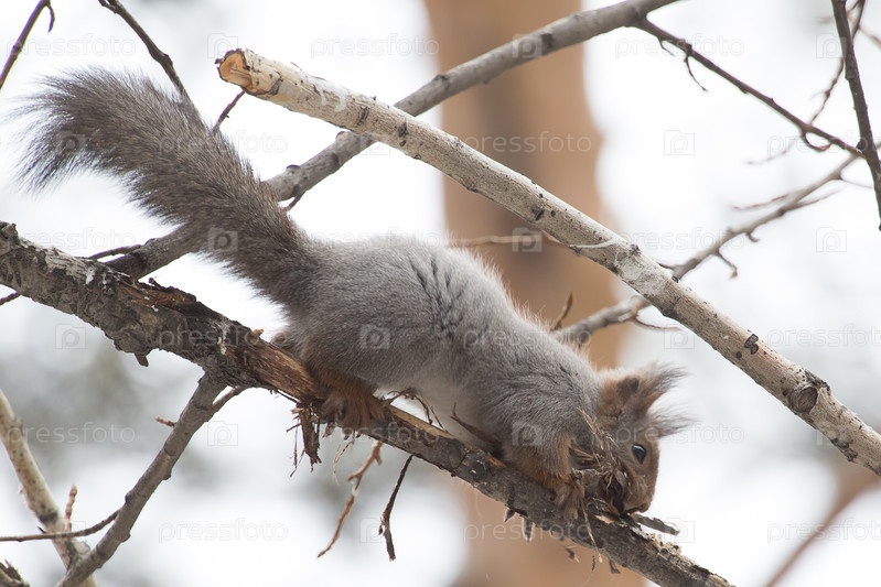 Белка грызет ветку