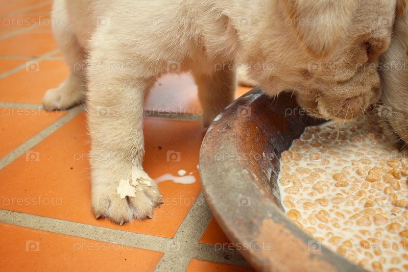 Щенок кушает