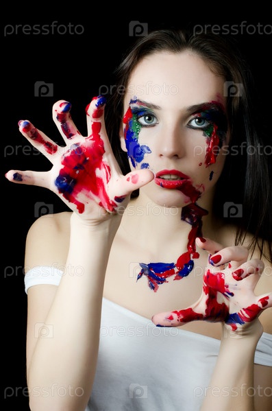 Красивая женщина с краской на лице