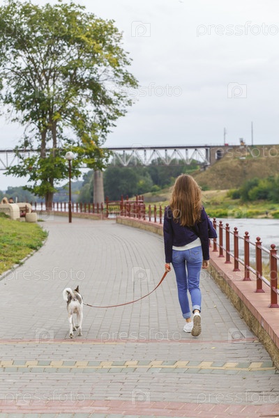 Девушка гуляет с собакой