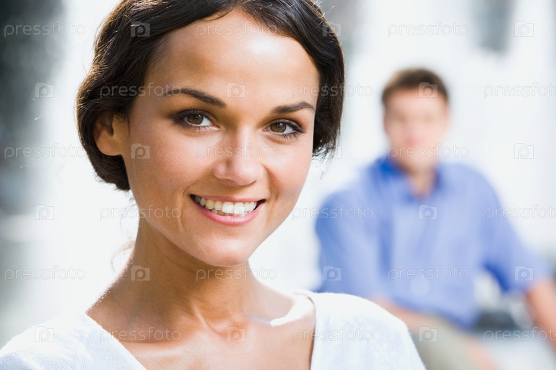 Портрет красивой молодой женщины с очаровательной улыбкой в парке