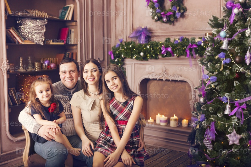 Семья празднует Рождество