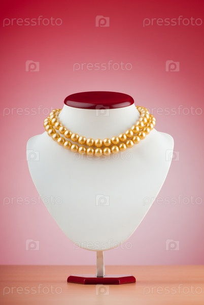Бусы на манекене на ярком фоне