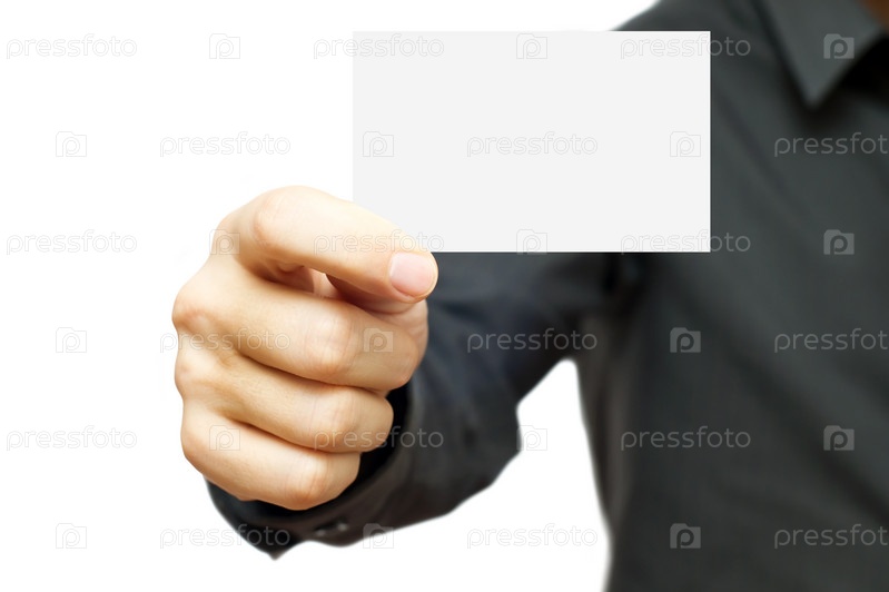 Бизнесмены в темных рубашках, держащие пустую визитку