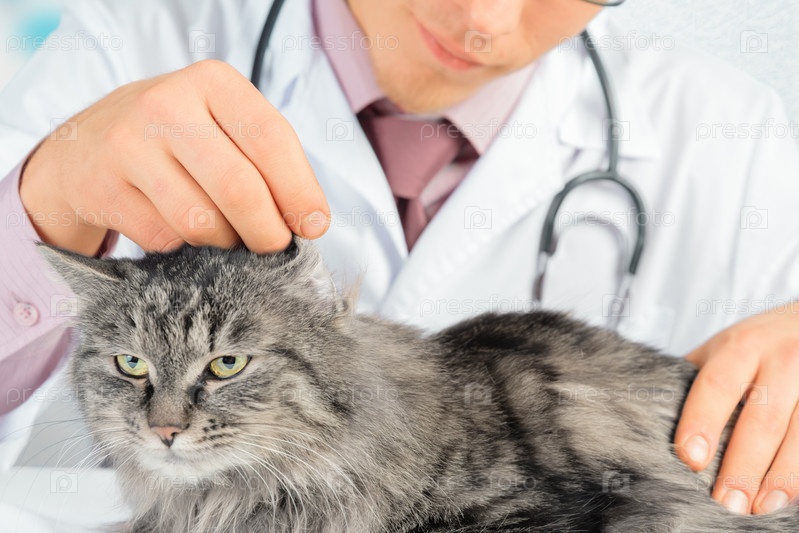 Ветеринар проверяет ухо кошке