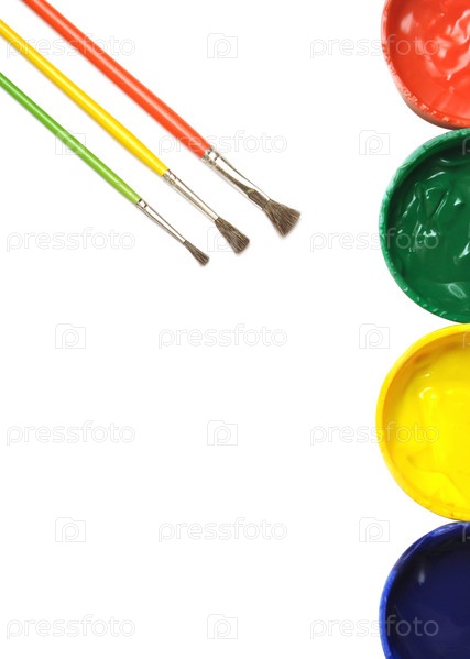 Баночки с разноцветной гуашью и кисточки