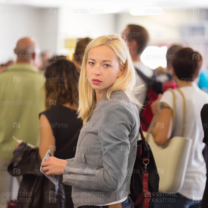 Молодая блондинка ждет в очереди