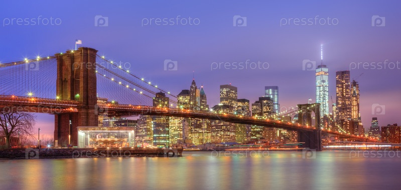 Бруклинский мост в сумерках, Нью-Йорк Сити