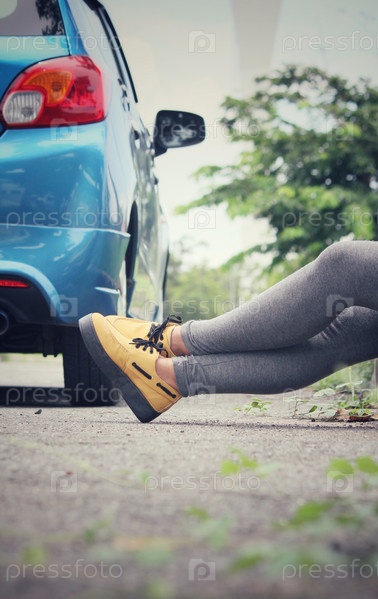 Обувь с автомобилем на дороге