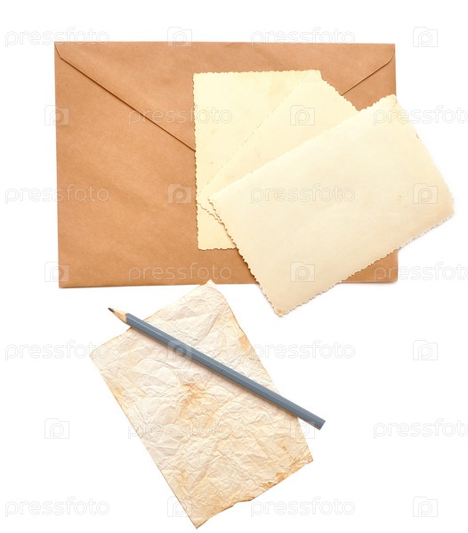 Пустые фото, конверт, бумага и карандаш
