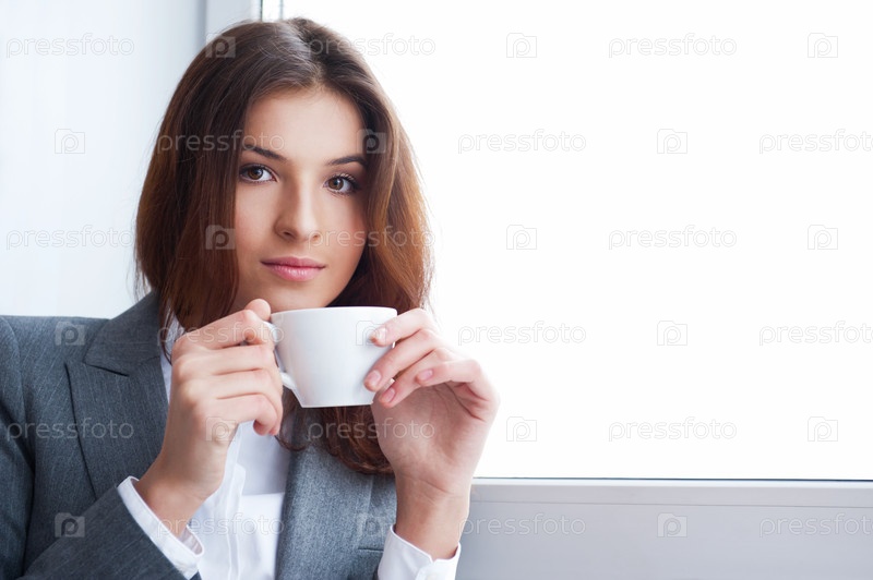 Девушка пьет кофе
