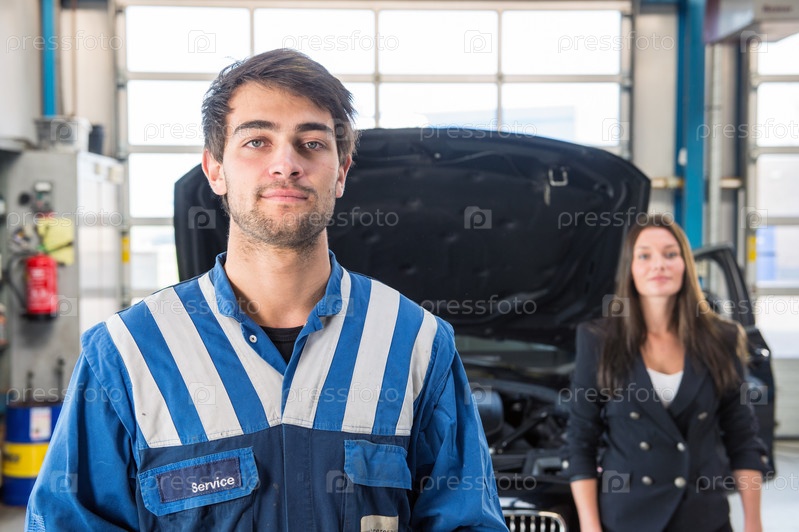 Портрет уверенно механик в гараже