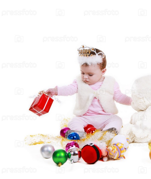 Маленькая девочка с новогодними украшениями