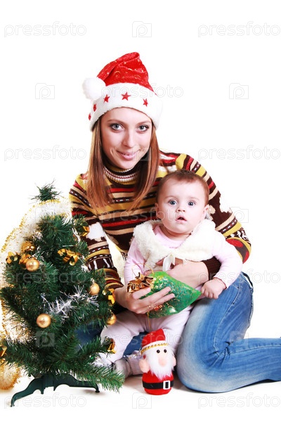 Молодая женщина с маленькой дочерью перед Рождеством