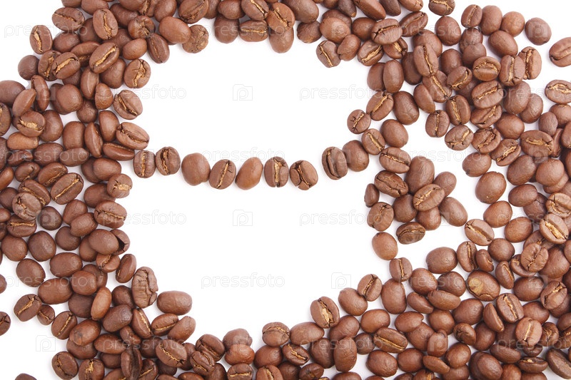 Черные кофейные бобы на белом фоне (ближе)