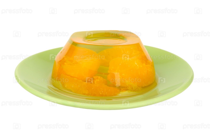 Фруктовое желе на зеленой тарелке