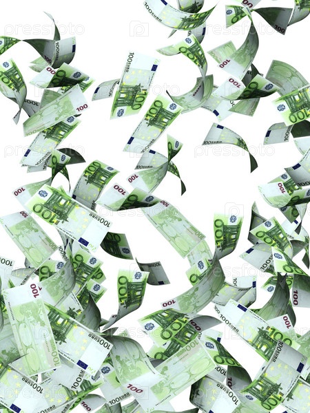 Летящие купюры на белом фоне