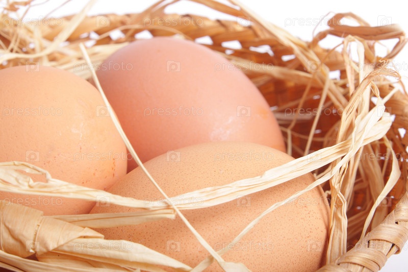 Три яйца в корзине со сломкой (ближе)
