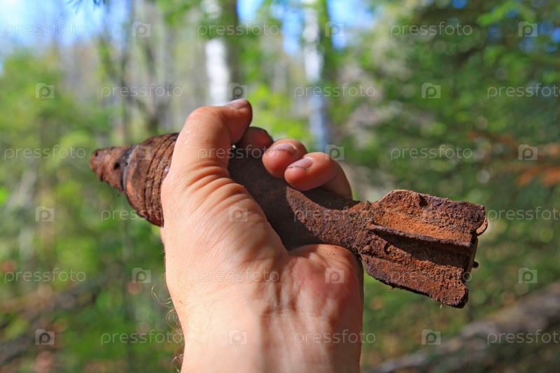 Рука со старой пусковой гранатой крупным планом