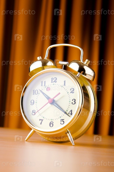 Будильник на фоне занавеса