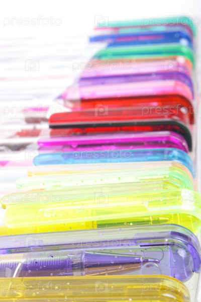 Много многоцветных ручек (офисные принадлежности)