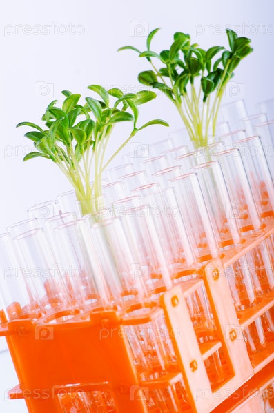 Зеленые саженцы в пробирках