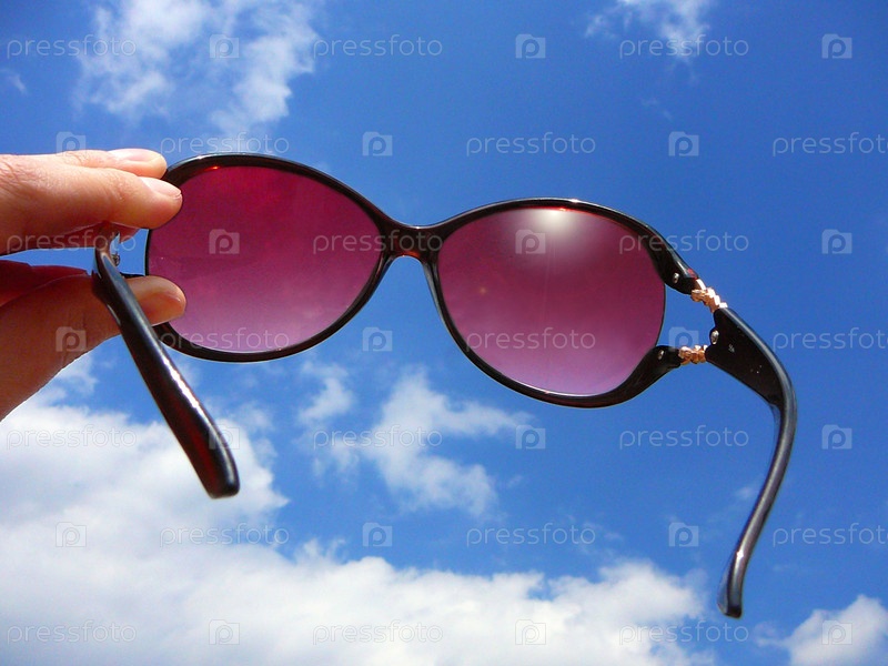 Розовые солнцезащитные очки на фоне голубого неба