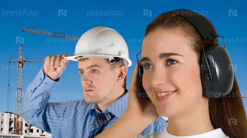 Молодые люди на фоне строящегося объекта