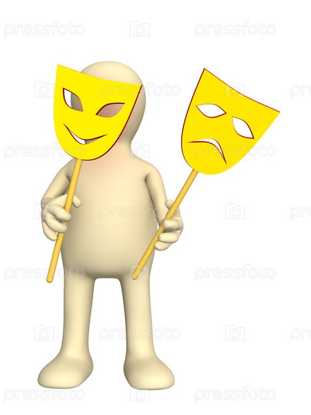 Маленький человек с двумя театральными масками