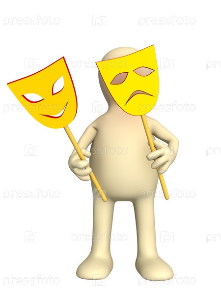 Маленький человек с двумя театральными масками