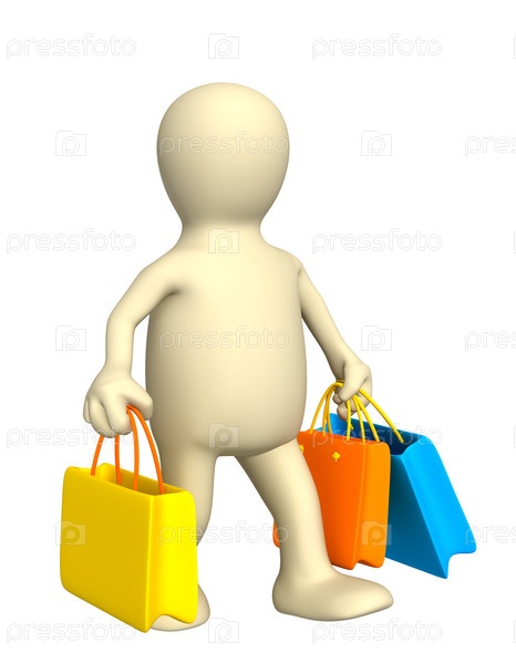 Человек, несущий яркие пакеты с покупками
