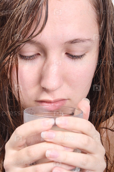 Молодая девушка пьет чистую воду (ближе)