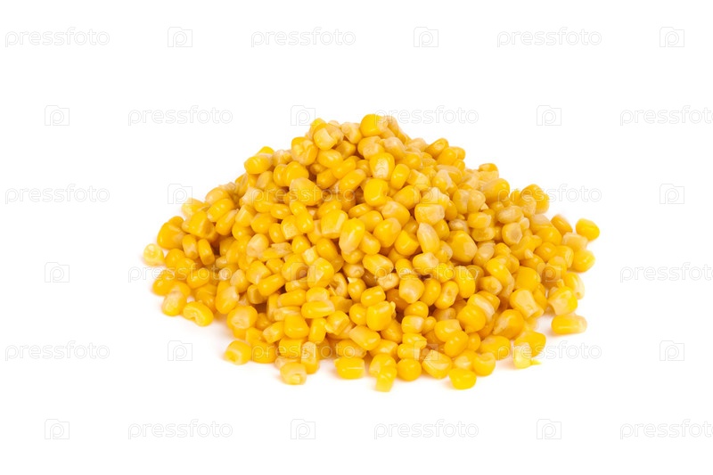Консервированная кукуруза на белом фоне