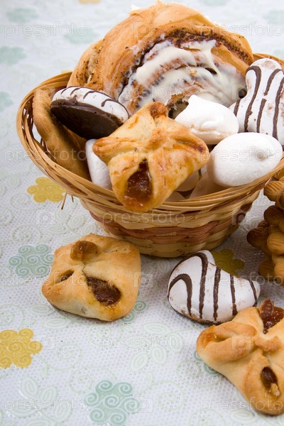 Разные печенья в корзине