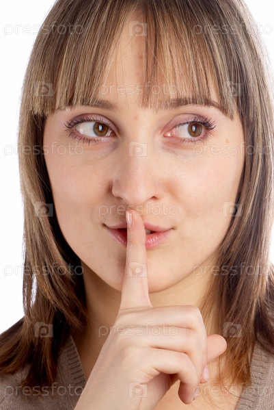 Молодая женщина показывает жестом "сохранить молчание"