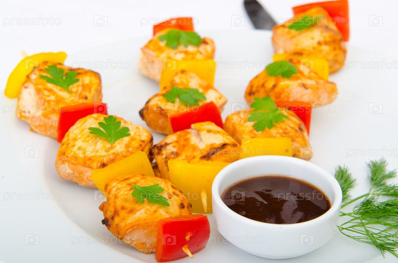 Куриный шашлык на шпажках с соусом