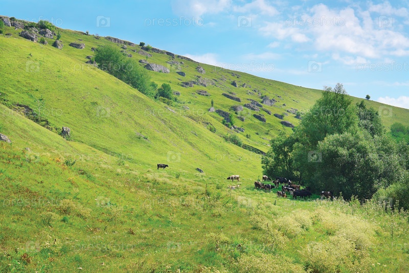 Поросший травой и кустарником горный склон