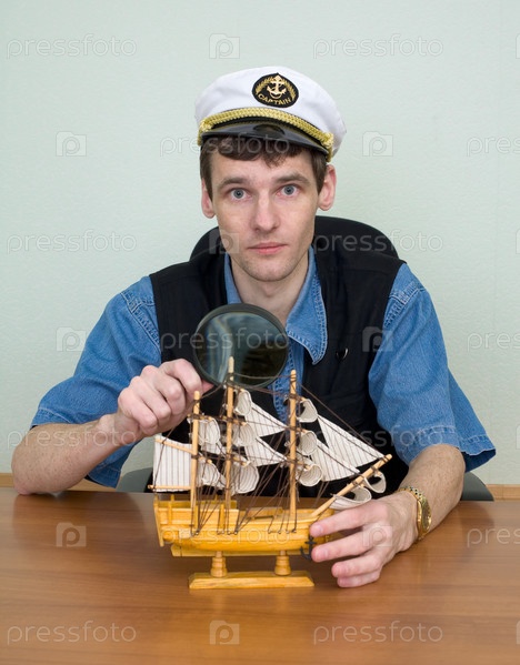 Мужчина в униформе и шляпе за столом с моряком