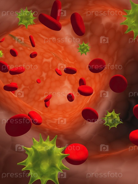 Эритроциты, плавающие по артерии