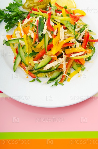 Овощной салат с курицей на столе