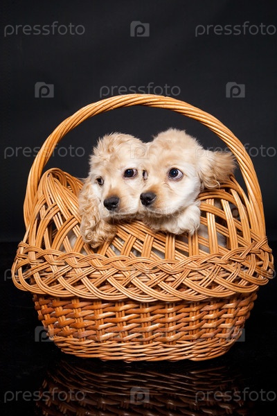 Маленькие кокер-спаниели на черном пластиковом полу