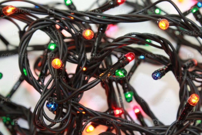 Новогодняя гирлянда крупным планом