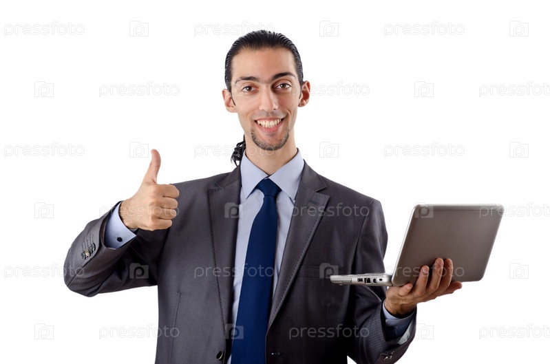 Улыбающийся бизнесмен с нетбуком в руке