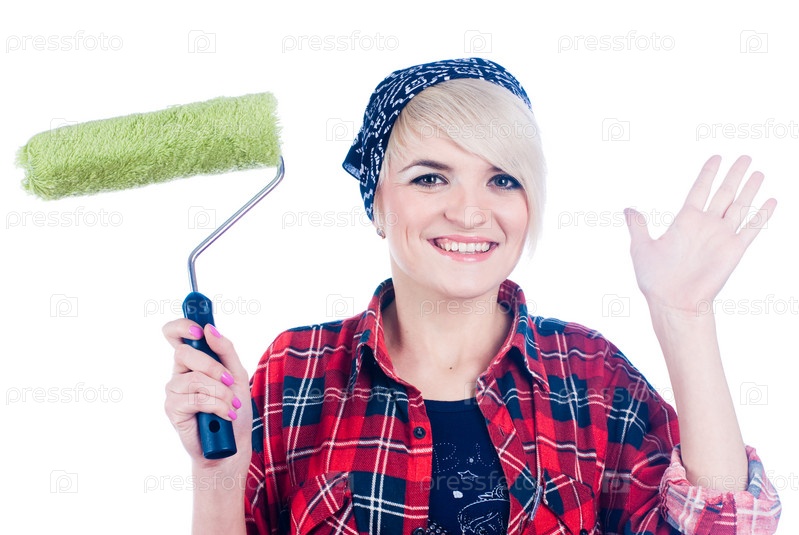 Портрет блондинки с валиком в руке